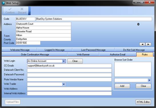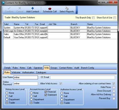 Log into Horizon using an account that has access to both the web and company sections in the setup menu. In the Web section you will see the option “Web Login”, the contact set here is the account that will have access to the admin page.